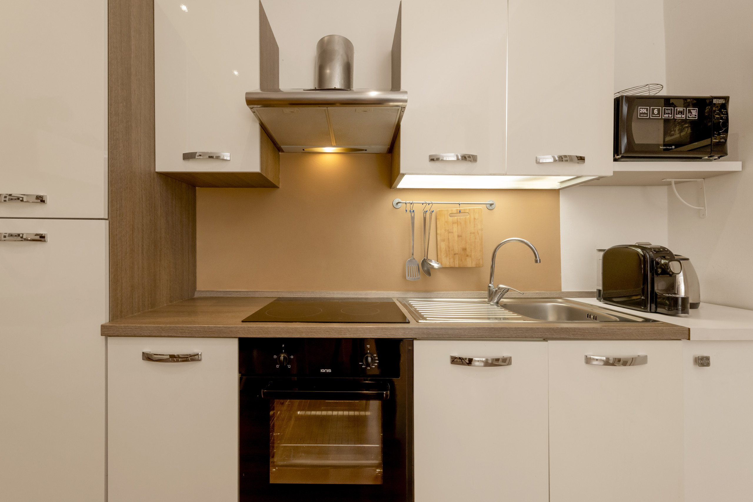 La cucina è dotata di frigorifero, forno a microonde, fornelli e tutto il necessario per il vostro soggiorno.