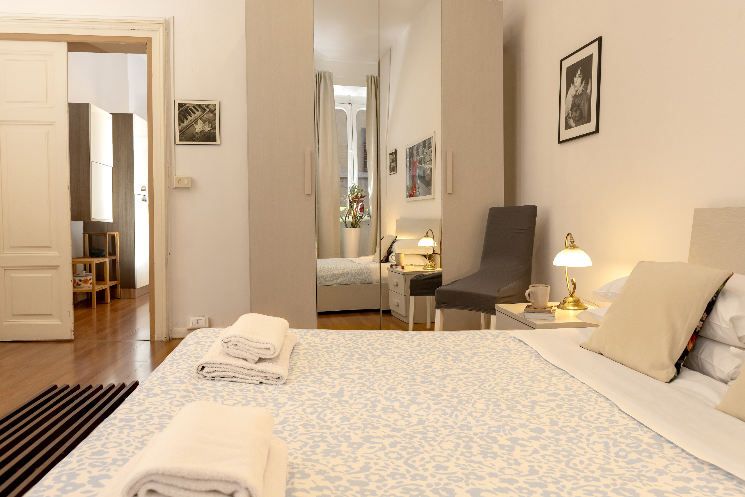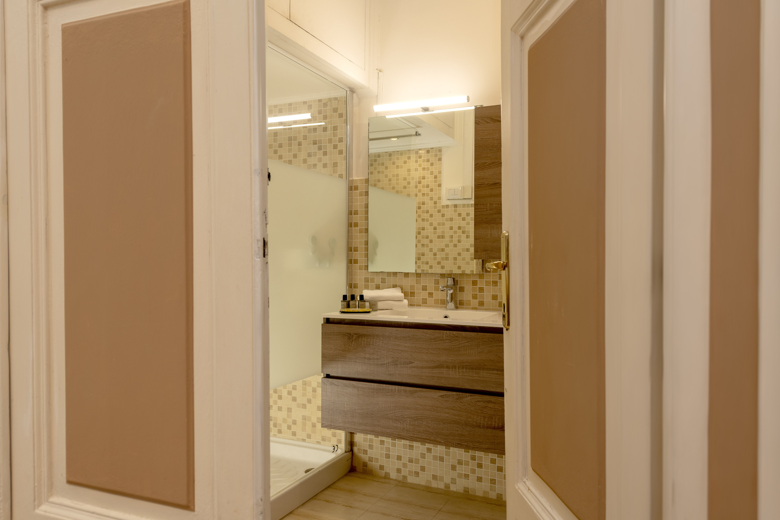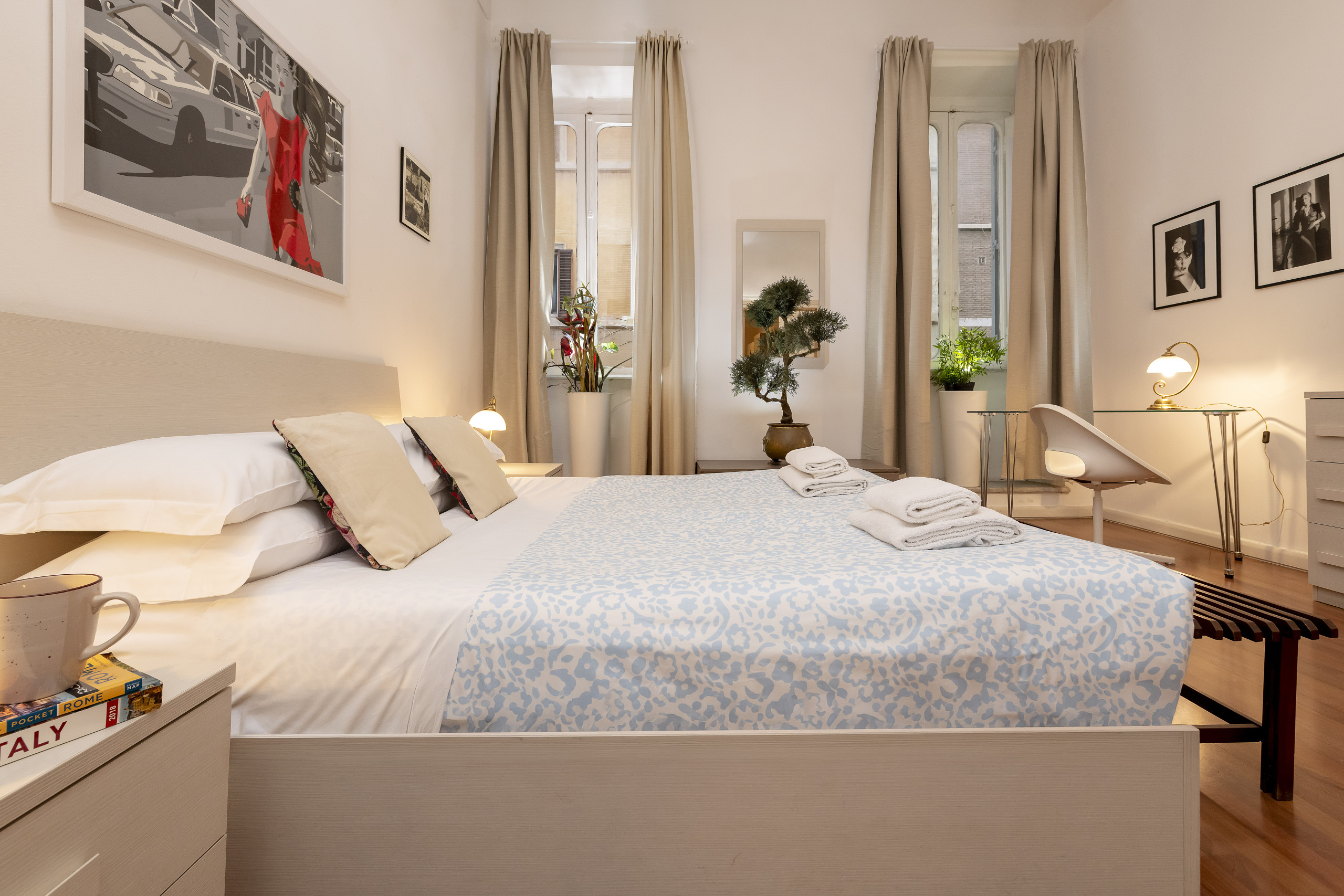 Il bagno con doccia è moderno e recentemente ristrutturato, proprio come l'intero appartamento. Alla fine del soggiorno si trova una spaziosa camera da letto con letto matrimoniale, un letto singolo, grande armadio, comodini e TV a schermo piatto. L'appartamento è dotato di lavatrice, aria condizionata, riscaldamento e connessione internet Wi-Fi e tutto ciò che serve per rendere il vostro soggiorno a Roma davvero piacevole!