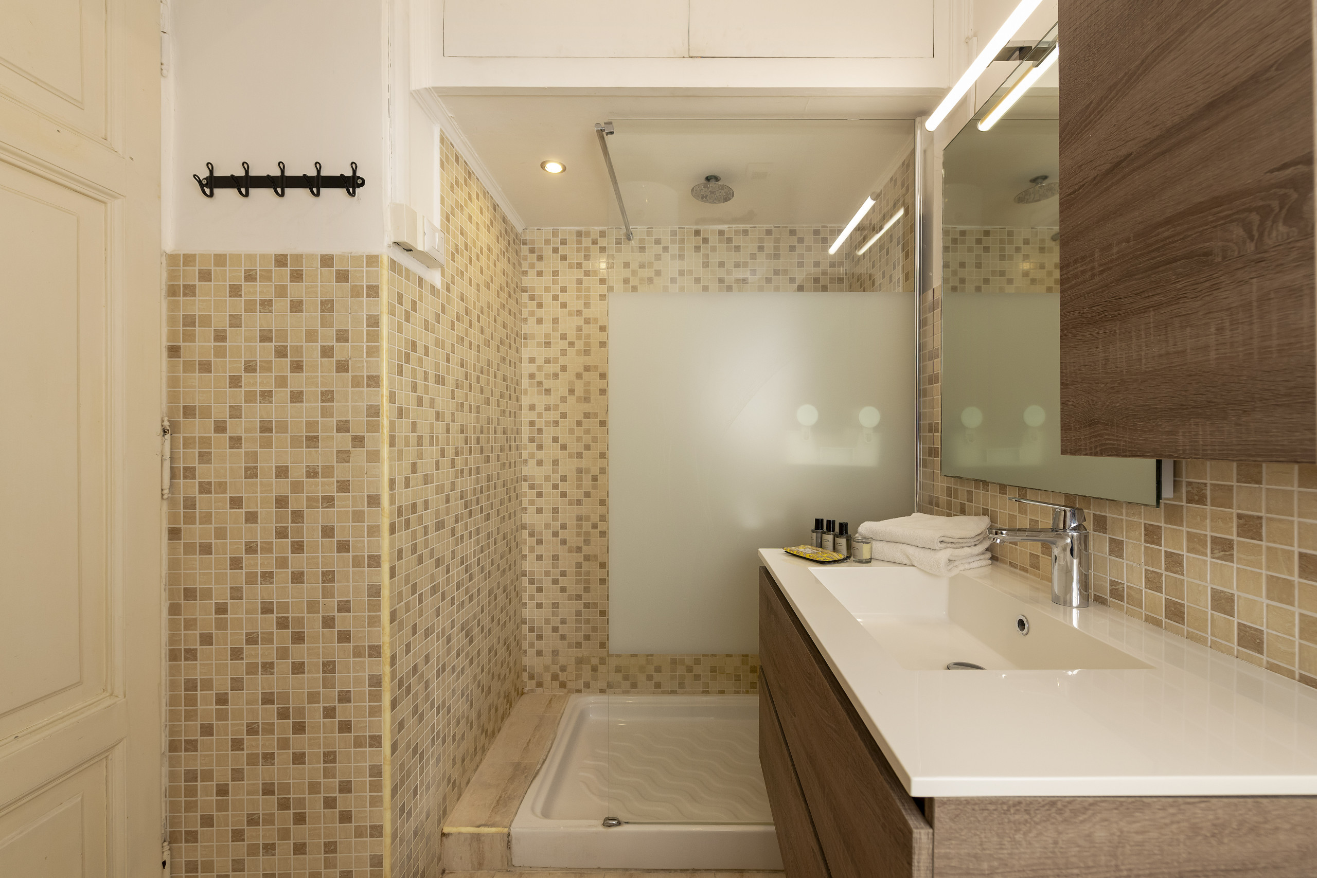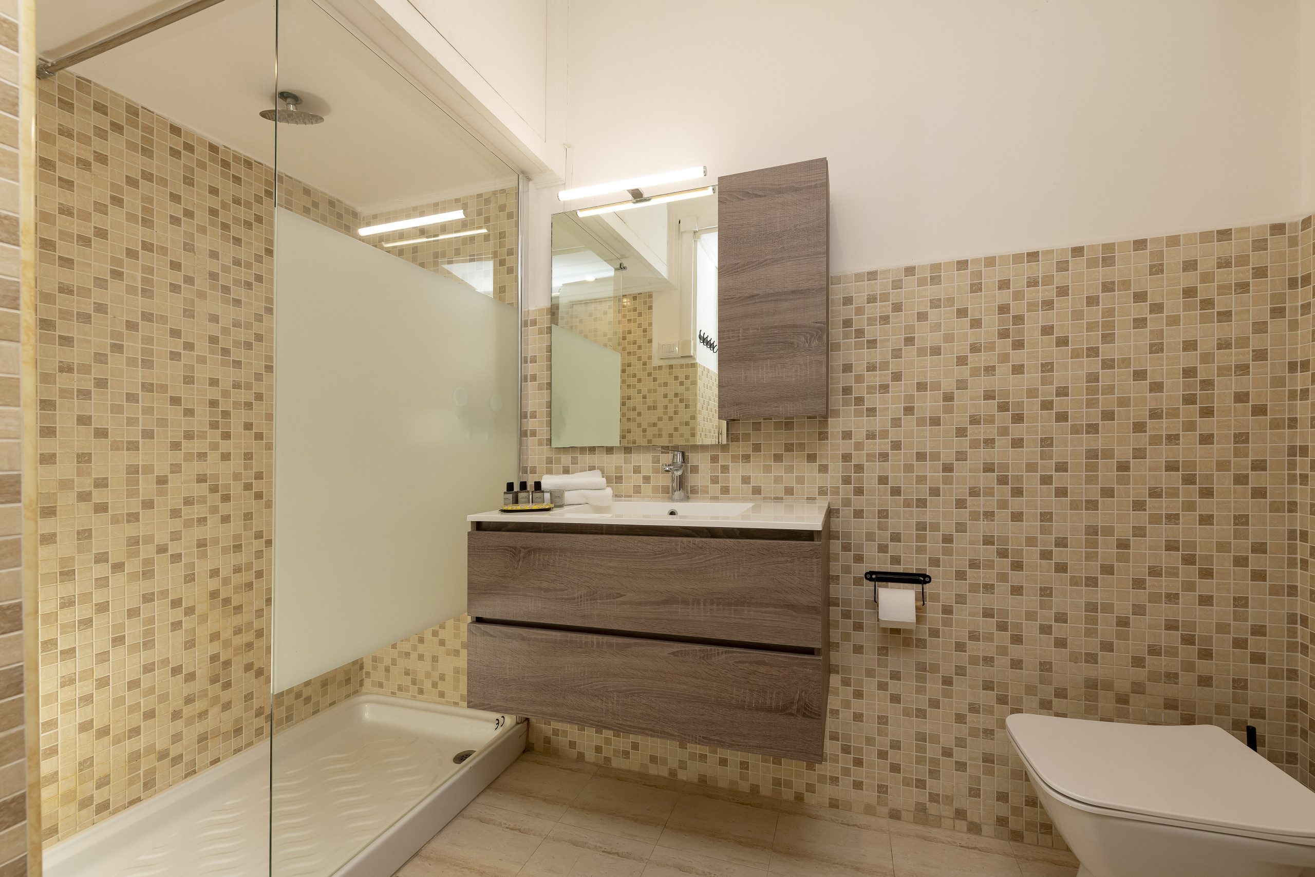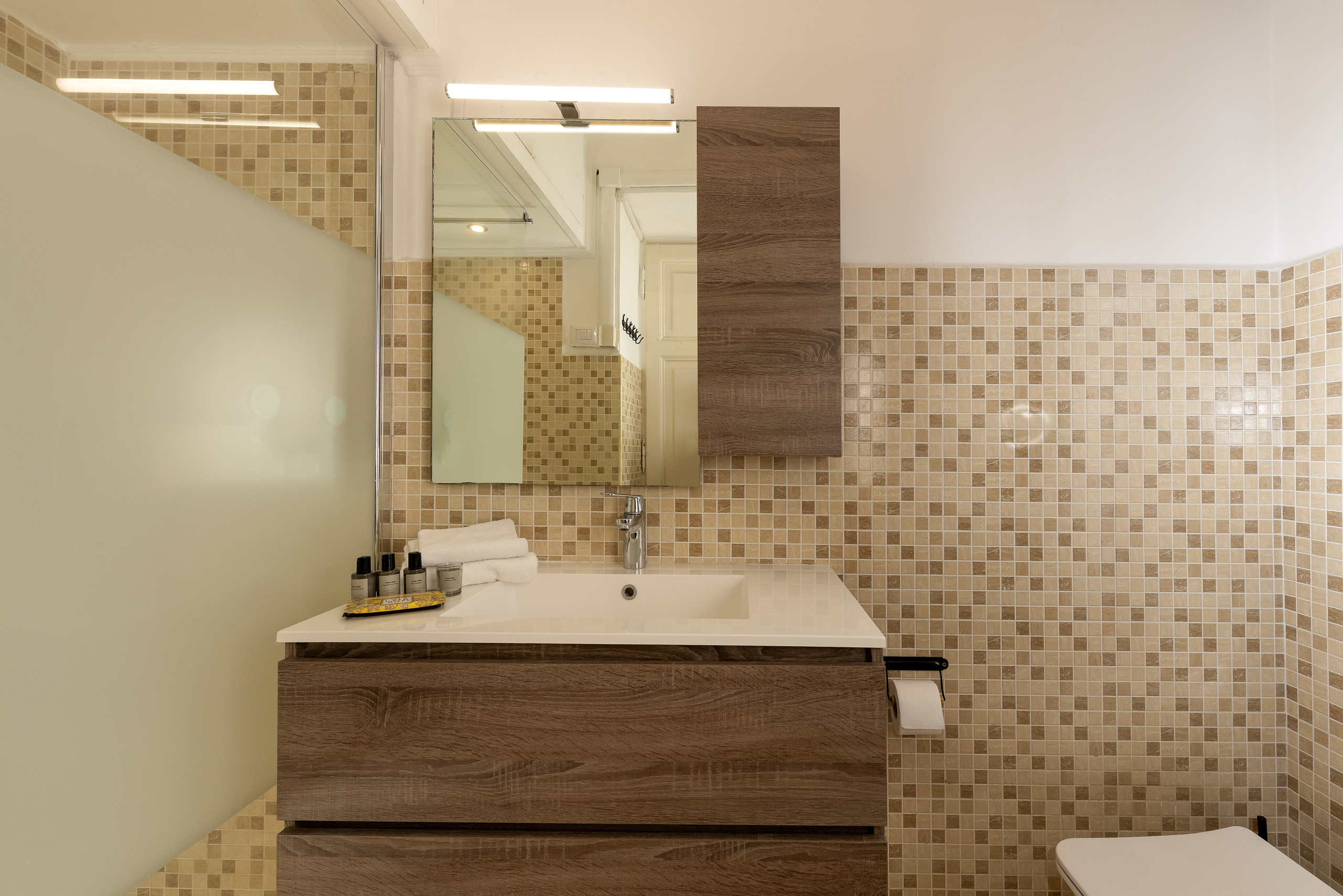 Il bagno con doccia è moderno e recentemente ristrutturato, proprio come l'intero appartamento. Alla fine del soggiorno si trova una spaziosa camera da letto con letto matrimoniale, un letto singolo, grande armadio, comodini e TV a schermo piatto. L'appartamento è dotato di lavatrice, aria condizionata, riscaldamento e connessione internet Wi-Fi e tutto ciò che serve per rendere il vostro soggiorno a Roma davvero piacevole!