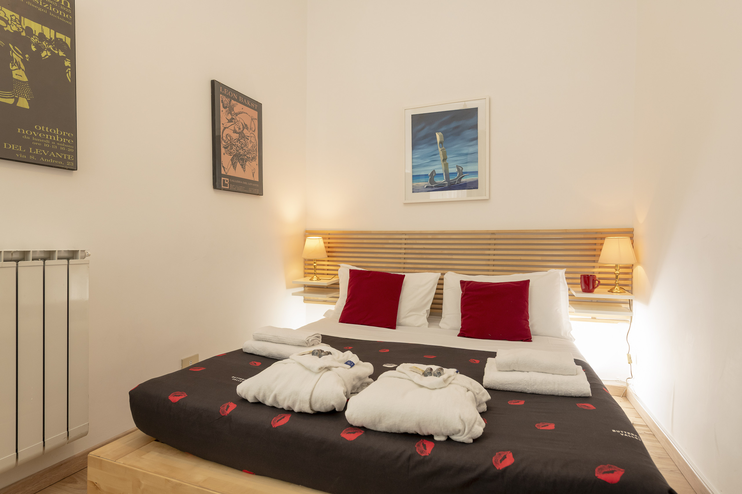L'appartamento è composto da un'ampia Suite con letto King Size (180x200), una seconda camera con letto King Size (180x190) e una terza camera con letto matrimoniale (160x190).